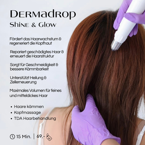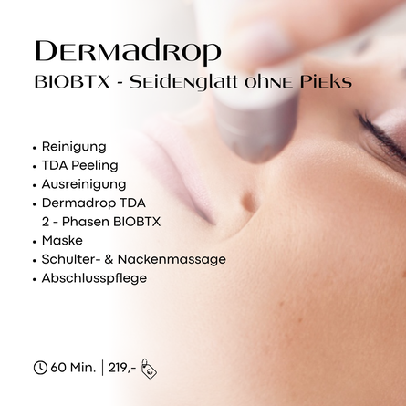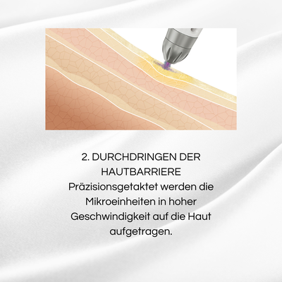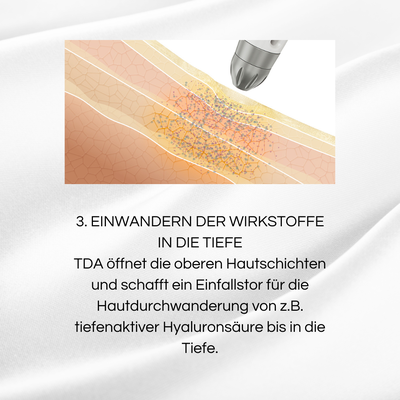 DERMADROP TDA hingegen arbeitet ohne direkten Hautkontakt und alles, was du während der Behandlung spürst, ist ein leichter, angenehm kühlender Massagedruck auf der Hautoberfläche.